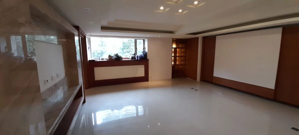 由於三代同堂居住人口比較多,有比較多房間數需求外,男主人有眾多藏書希望客廳就像私人圖書館一樣充滿書香氣息,但同時也有與家人共享的觀影需求。設計師運用國外大宅的規劃思維,沿牆面打造充足且隱形收納空間,透過與牆面齊平的收納設計,巧妙地將客廳主牆轉化為壯觀的書牆,不僅滿足大量的藏書需求,更整合了影音設備,兼具文化氣息與視聽享受。
