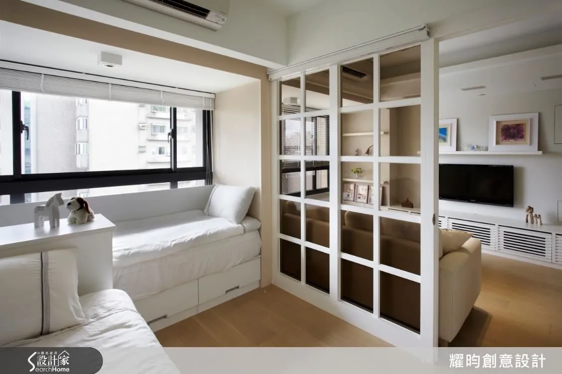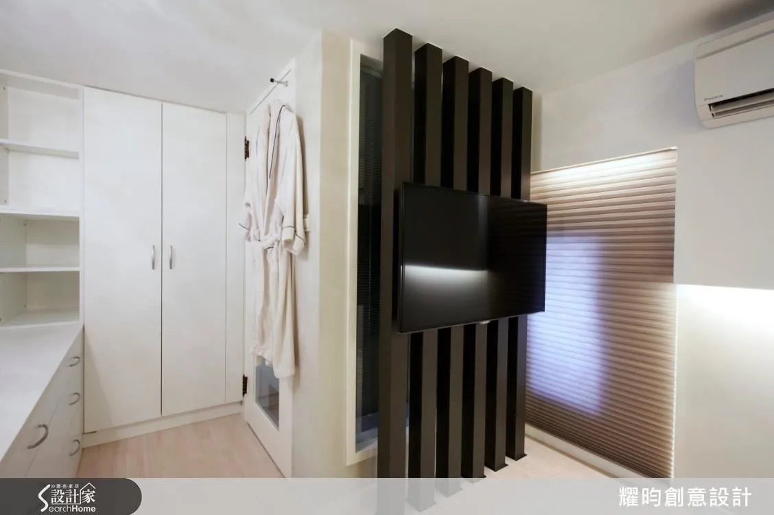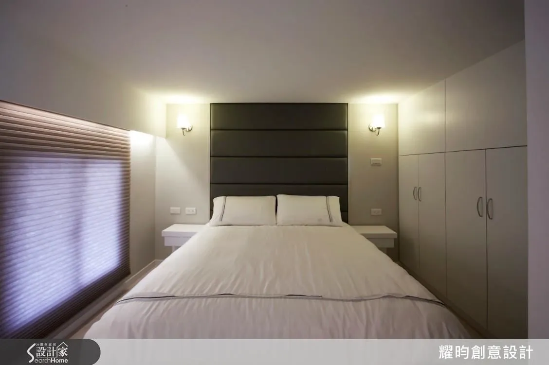 雖空間有限,但仍為主人規劃寬敞舒適的主臥空間,巧妙在入門轉折處規劃更衣室區域,更延續公領域的純白色調,營造紓壓的好眠氛圍。