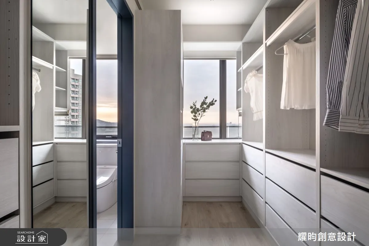 原主臥的動線凌亂,為了將空間坪效最大化,設計師將主臥機能整合於同一側,更保留更衣間的良好採光,空間以大面積留白也為夫妻的兩人時光增添一絲慵懶愜意。