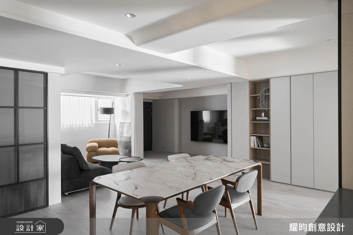 醫療職業忙碌工作之餘,對於要尋覓可信任的設計公司,最可靠的方式就是透過周遭友人的推薦!本案為案屋主為醫務人員,因為看到同事家僅有13坪的挑高小宅,竟可以充分運用空間規劃出舒適的兩房兩廳,透過專業規劃在有限的坪數發揮最佳坪效,因此委託耀昀創意設計對自己購入的 57 坪老屋進行從基礎工程到室內格局的全面翻新。蔡昀璋總監梳理屋主對生活空間需求後,將老屋格局砍掉重練,重新規劃成標準四房與一間專屬視聽空間,以及兩間衛浴與兩間儲藏室,每一個臥室的編排皆擁有採光外,動線的規劃化解了老屋常見的閒置空間與窄長廊道,讓住宅格局充滿彈性,不僅家庭成員有舒適的共享空間,還有寬裕的臥室、孝親房以及一間專門品味音樂的視聽空間,30年老屋褪去昏暗陳舊的外衣,成為明亮舒適的生活空間。